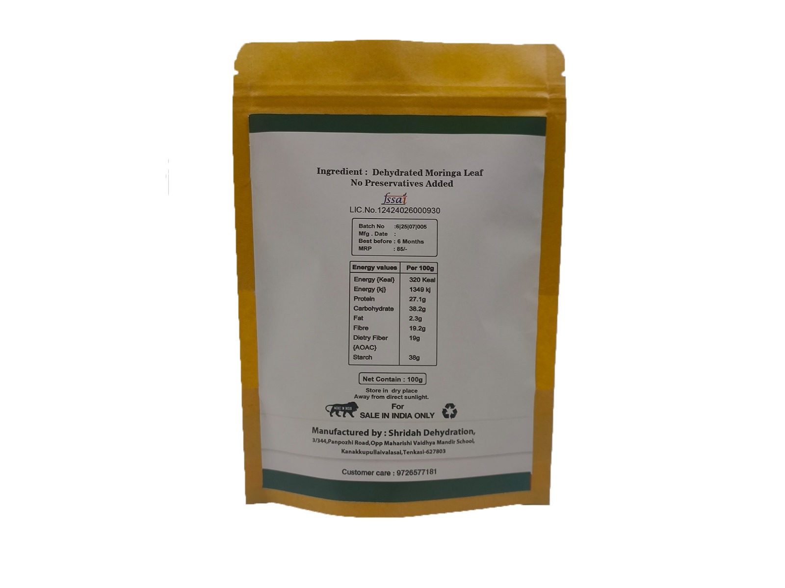 Perfect for making teas, powders, capsules, or adding to smoothies, soups, and sauces, our dehydrated moringa leaves are 100% natural and free from any additives or preservatives.
