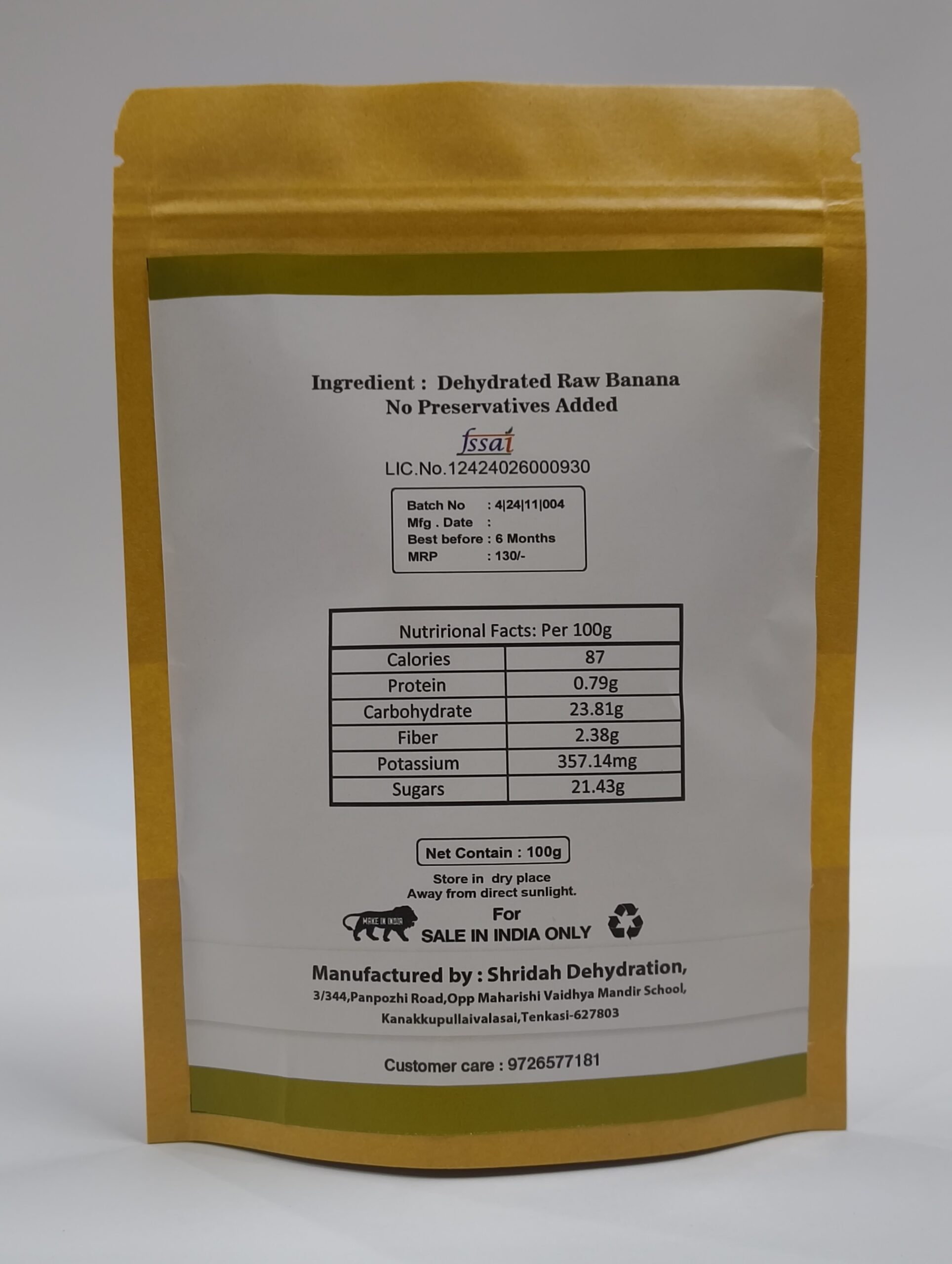 Ingredients: 100% Raw Banana